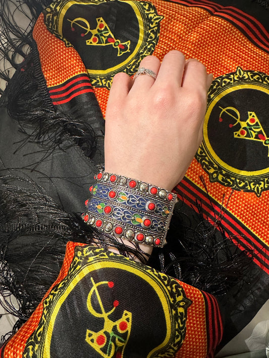 Bracelet Manchette Kabyle Fantaisie – Argenté & Multicolore Tradition Berbère